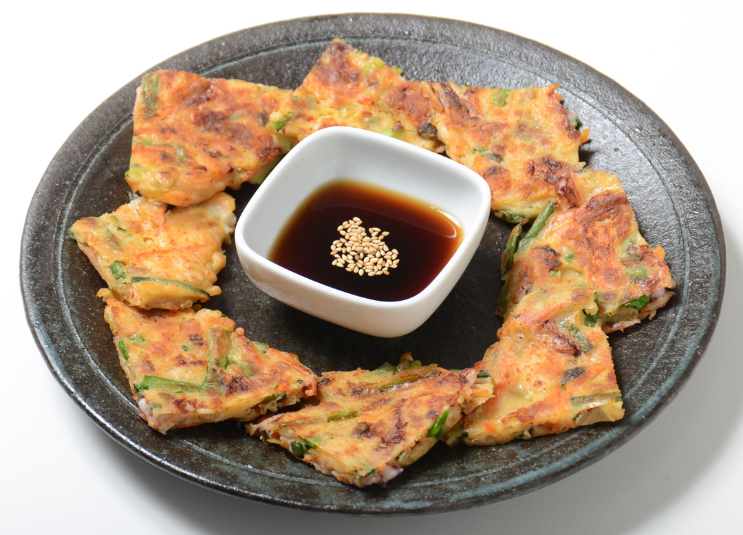 ※この作り方は、フライパンの直径26〜28cmのもので、2枚同時に焼いています。もっと小さなフライパンで焼くときには、ごま油の量を調節し、1枚ずつ4回に分けて焼いてください。